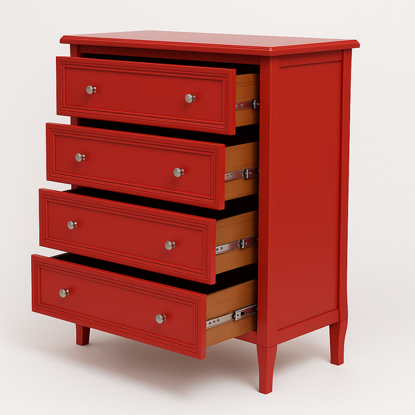 Cômoda Amsterdã 4 Gavetas Madeira Maciça Vermelho