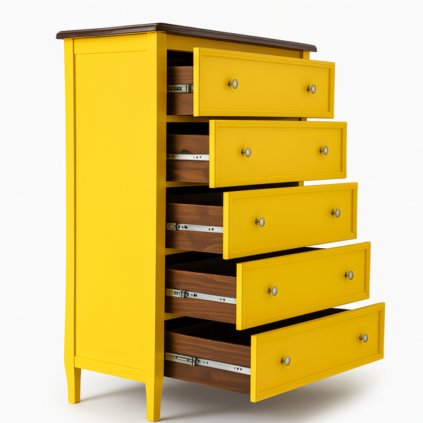 Cômoda Amsterdã 5 Gavetas Madeira Maciça Amarelo com Tampo Amêndoa