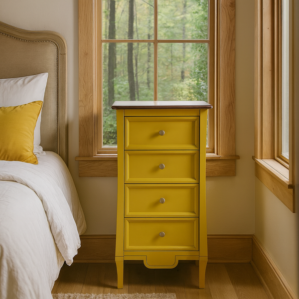 Cômoda Estreita Amsterdã Madeira Maciça 4 Gavetas Amarelo com Tampo Amêndoa