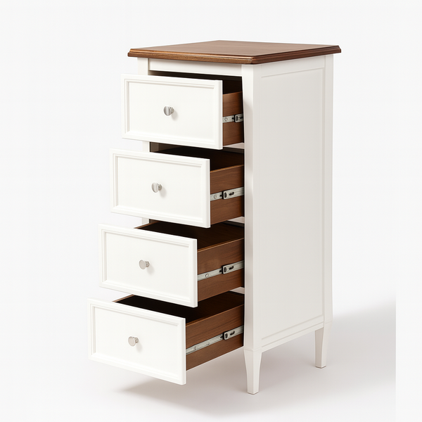 Cômoda Estreita Amsterdã Madeira Maciça 4 Gavetas Branco com Tampo Amêndoa