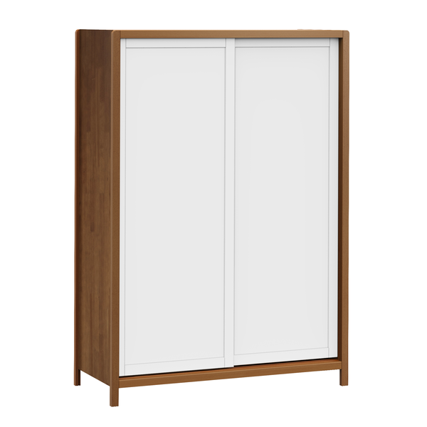 Feito em madeira maciça de reflorestamento, com acabamento em verniz acetinado e portas de correr em MDF laca branco!