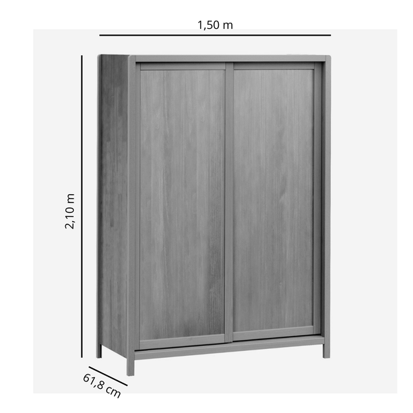 O Guarda Roupa Módena é ideal para quem procura uma linha de madeira moderna, para ambientes com pouco espaço. Serve tanto para quarto de solteiro como de casal. Possui 2 portas de correr e 2 gavetas internas. Também conta com prateleiras e cabeideiro.